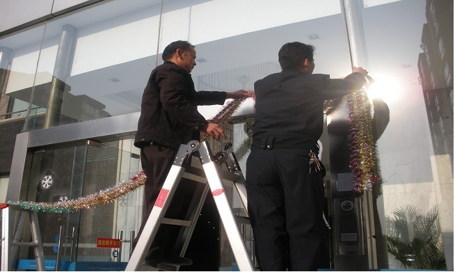 12月20日,尚城物业管理处的员工们一上班就忙开了,他们齐心协力在物业办公室、小区公共部位和商铺挂彩带、贴圣诞图片、装扮圣诞树、喷画装饰雪花,一天下来,小区里彩灯闪耀、彩带飞扬,主干道的行道树上挂满了彩灯和装饰品,五彩缤纷,引人注目,小区到处洋溢着浓浓的圣诞气氛。126幢有位业主看到我们在现场忙碌着的员工,赞叹地说:“现在的物业可真周到啊,咱们小区这么一来可是锦上添花,喜气洋洋迎佳节啦!”听到这位业主的赞许,大家都会心地笑了;只要能赢得业主们的首肯,大家觉得付出再多的辛苦都是值得的。还有什么比业主的好评更能让我们开心的呢?