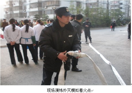 在以上演练过程中,员工的实战演练和物业公司有条不紊的组织博得了现场观摩人员的阵阵掌声。演练结束后,王经理发表了总结性讲话,他提出物业全体员工今后要进一步加强消防防火安全意识和安全责任感,时刻做到警钟长鸣,确保春节前后小区安全无事故。此次活动得到了小区业主、社区、消防大队的一致认可,增强了员工的消防意识,起到了未雨绸缪的作用.