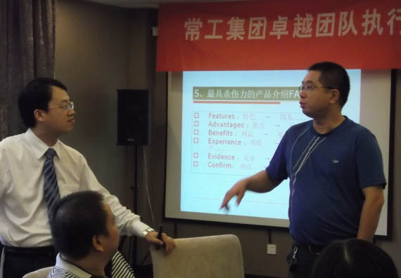 2011年7月10日,常工集团在集团所属的尚城绿园会所二楼会议室举办了为期一天的主题为《卓越团队执行力和销售实战技能特训》的内训课程。集团、房产及各子公司的部门负责人和动力公司、房产公司的销售管理人员近60人参加了此次培训。这次培训旨在增强企业的团队执行力,提高企业销售精英的实战技能。