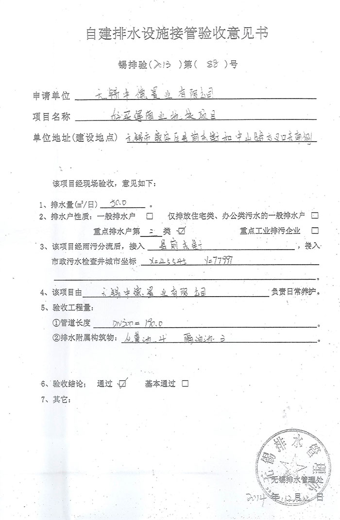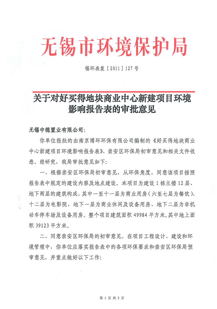 无锡中德置业有限公司好买得地块商业中心新建项目”三同时“验收公示