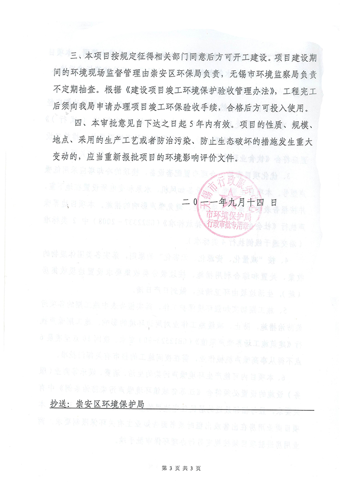 - 3.无锡市崇安区环保局对该项目的审批意见